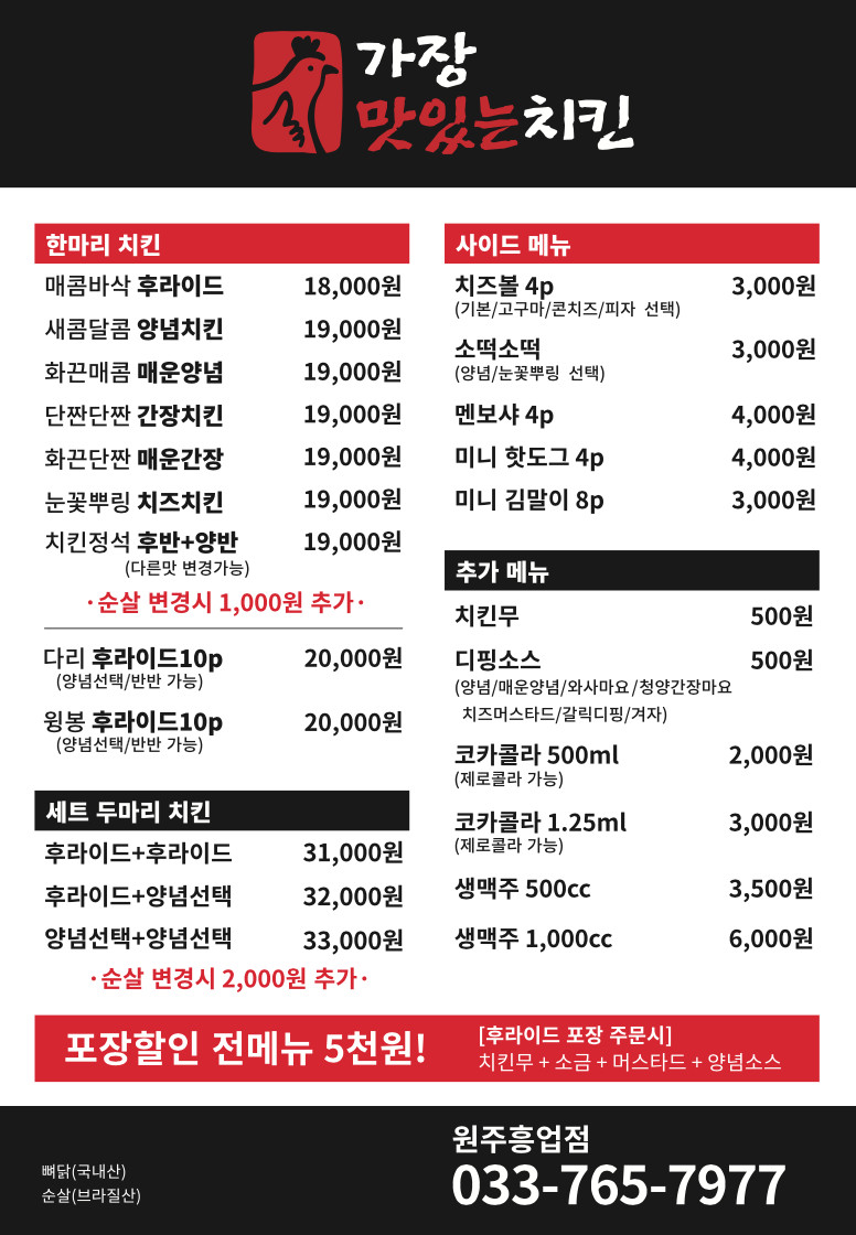 가장맛있는치킨원주흥업점